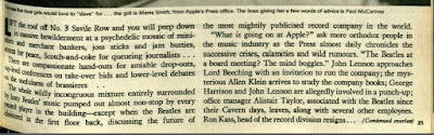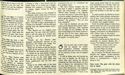 In June 1969, august organ the TV Times (of all things) published a 3-part eye witness snapshot of goings on inside 3 Savile Row. Much of interest, and so, without the usual level of ado, here 'tis: